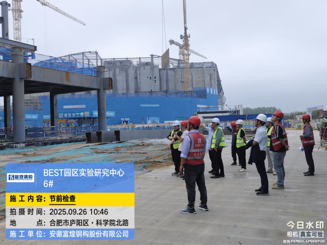 本次檢查抽調安全、技術、質量等部門骨干人員,組成聯合檢查組,緊扣“防風險、保安全、迎佳節”主題,先后對富煌鋼構承建的緊湊型聚變能實驗裝置園區鋼結構工程、福耀集團安徽全產業鏈生產基地項目(浮法)制安項目等重點工程開展了全覆蓋、拉網式排查。檢查組聚焦高空作業、吊裝施工、臨時用電、消防管理等關鍵環節,深入施工現場、工人生活區及材料堆放區等區域,細致排查隱患,現場反饋問題,并明確整改時限與責任人。